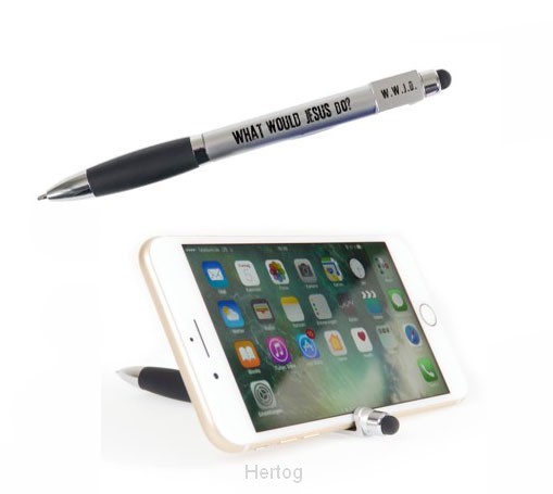 Balpen zilver met softtouch W.W.J.D. - zilver